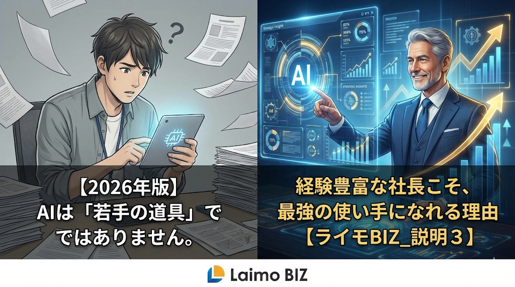 【2026年版】AIは『便利な道具』から『経営のインフラ』へ。30年の経験が最強の武器に変わる2026年の真実【ライモBIZ_説明3】
