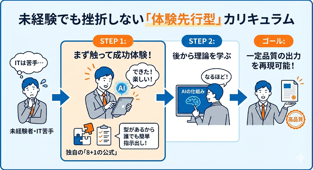 1. 未経験でも挫折しない「体験先行型」カリキュラム