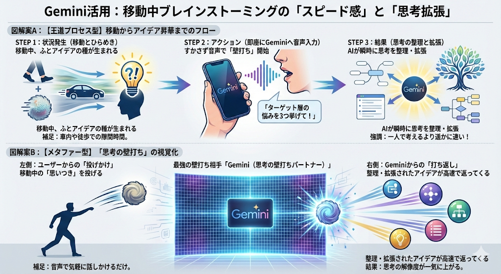 1. 車内や徒歩での「アイデアの壁打ち」